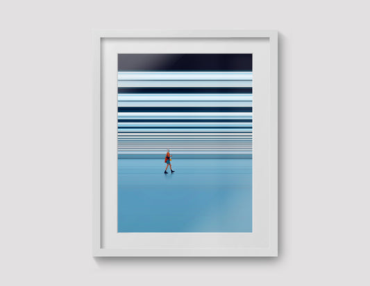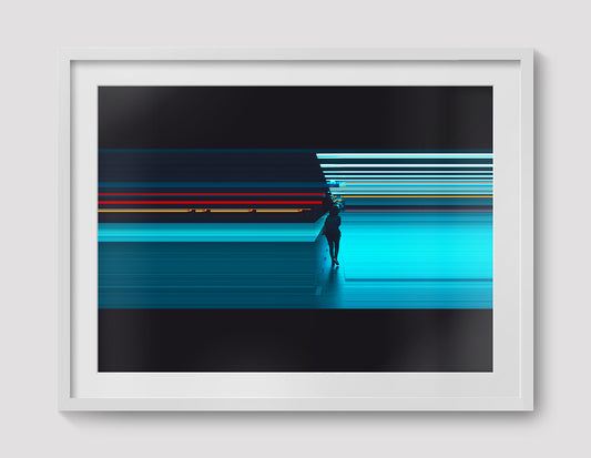 Photographies combinées de manière séquentielle, où chaque image devient une ligne temporelle. Le procédé restructure la prise de vue pour n'en conserver que les lignes graphiques, isolant les personnages et tout ce qui les entoure étirant le temps et l'espace jusqu'à l'infini.