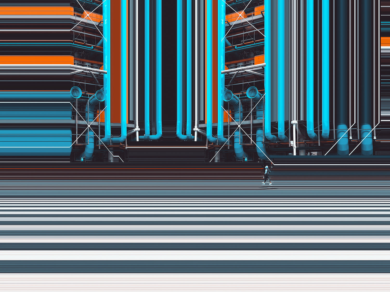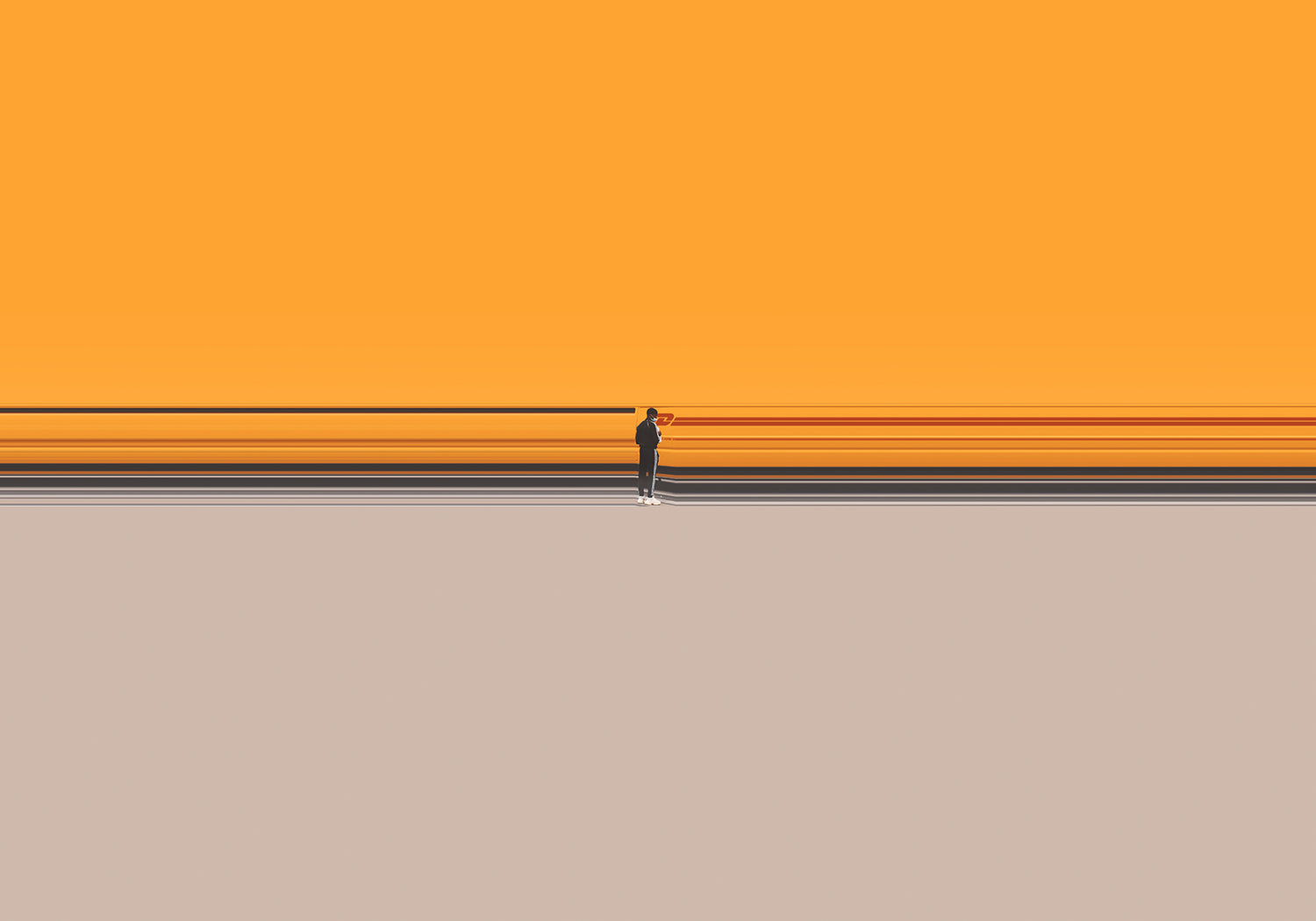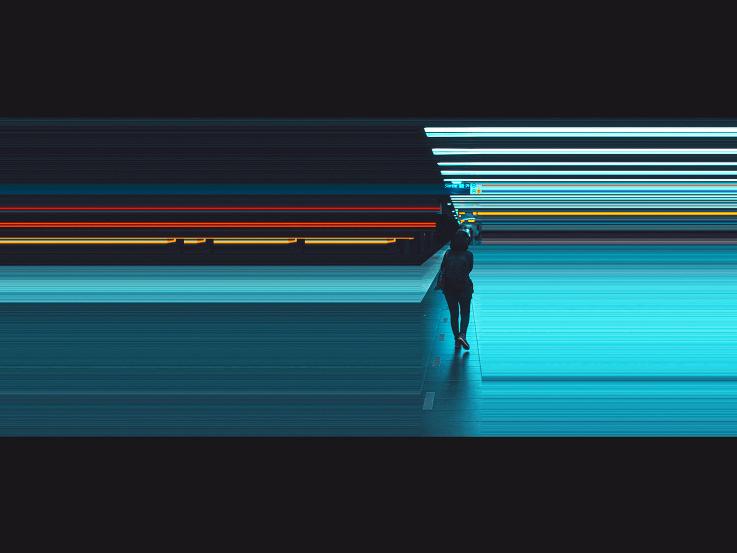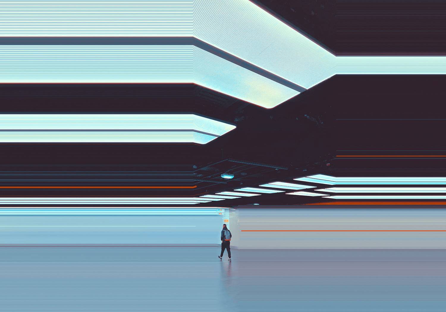 Photographies combinées de manière séquentielle, où chaque image devient une ligne temporelle. Le procédé restructure la prise de vue pour n'en conserver que les lignes graphiques, isolant les personnages et tout ce qui les entoure étirant le temps et l'espace jusqu'à l'infini.