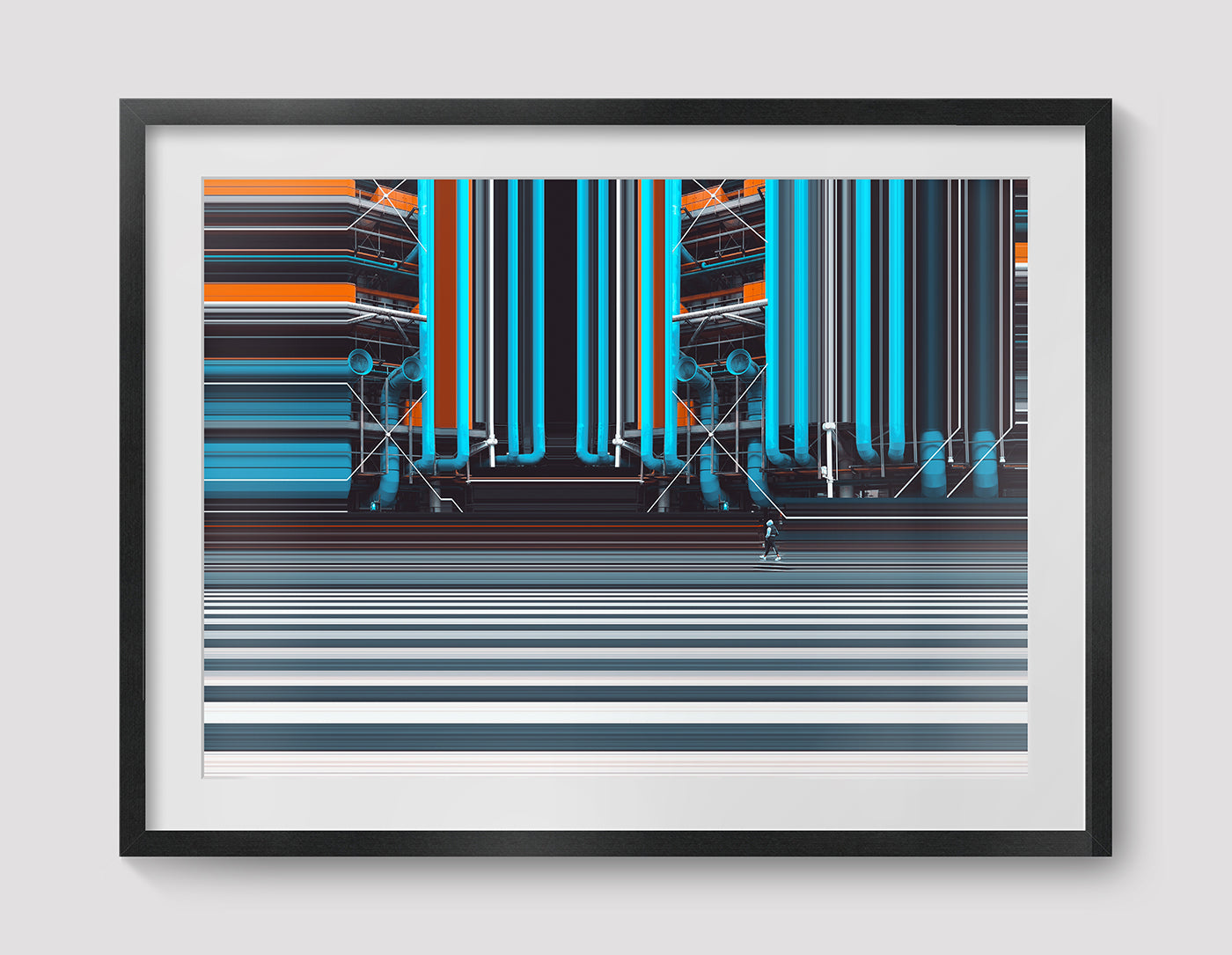 Photographies combinées de manière séquentielle, où chaque image devient une ligne temporelle. Le procédé restructure la prise de vue pour n'en conserver que les lignes graphiques, isolant les personnages et tout ce qui les entoure étirant le temps et l'espace jusqu'à l'infini.